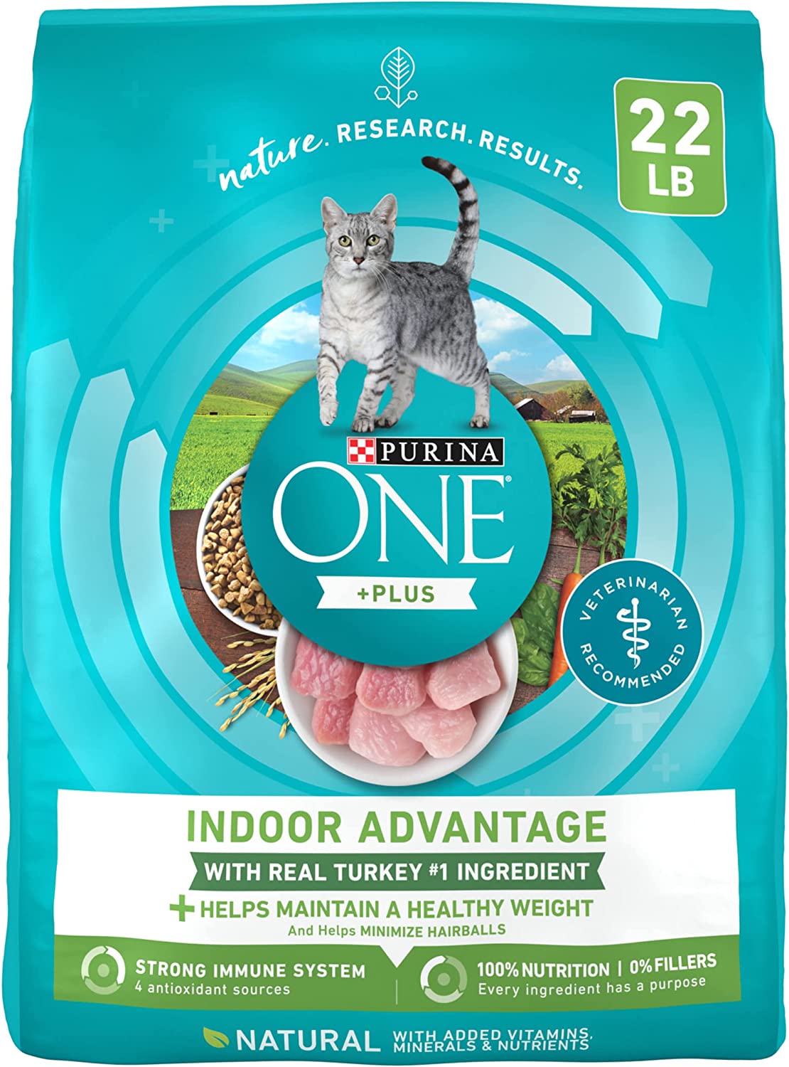 - One (1) 22 lb. Bag – Purina ONE Natural, Low Fat, Weight Control, Indoor Dry Cat Food, +Plus Indoor Advantage